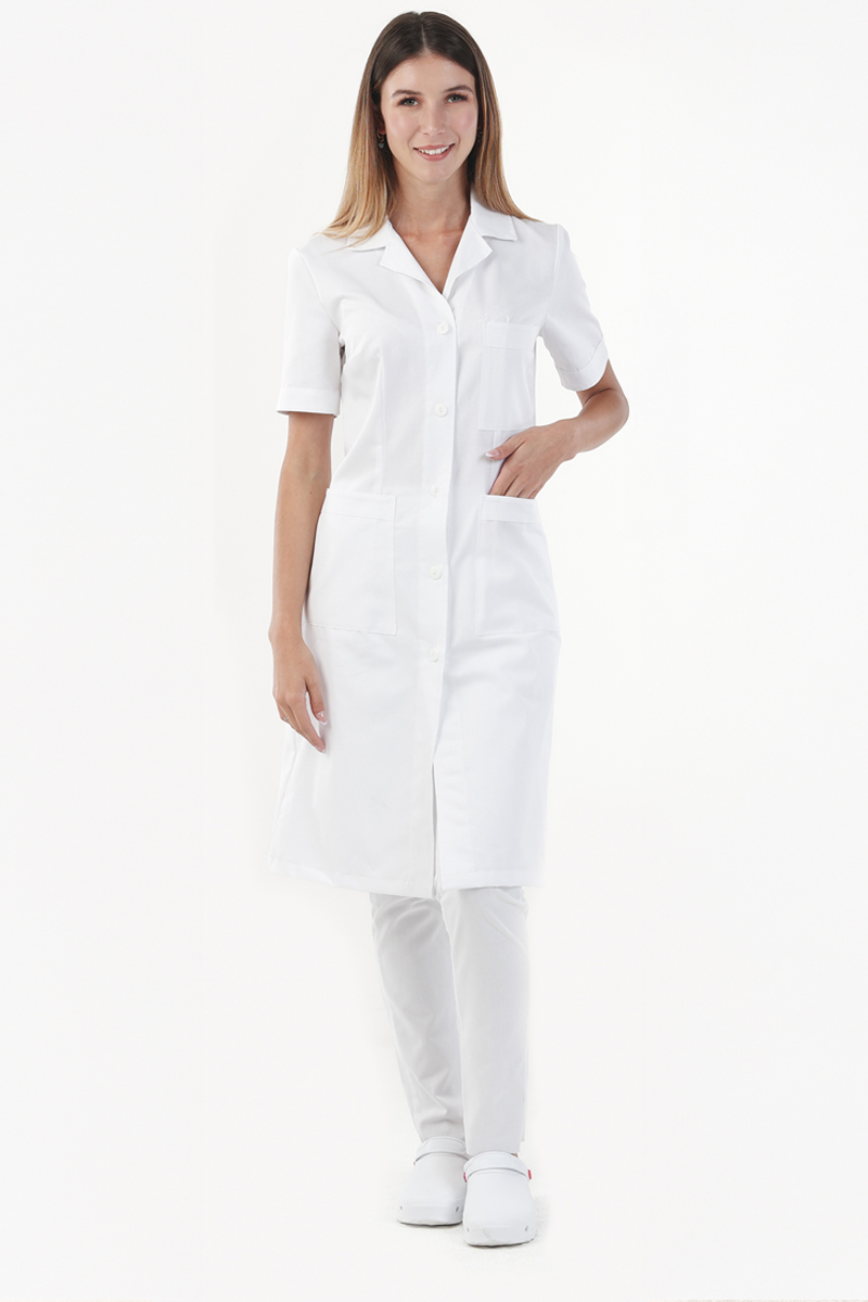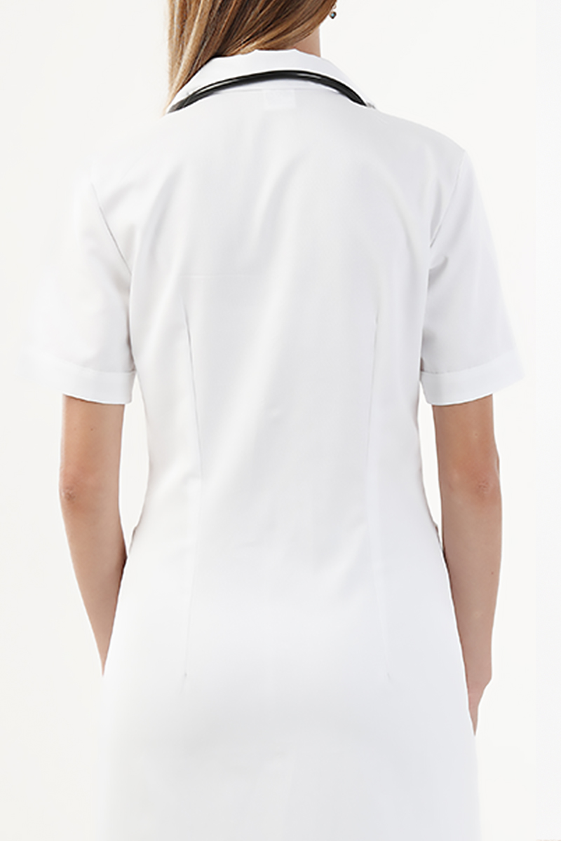 Camice medico da donna slim, dal taglio moderno e femminile. Tessuto leggero e confortevole in cotone al 100%, con chiusura a bottoni e tasche pratiche. Ideale per un look professionale e curato.