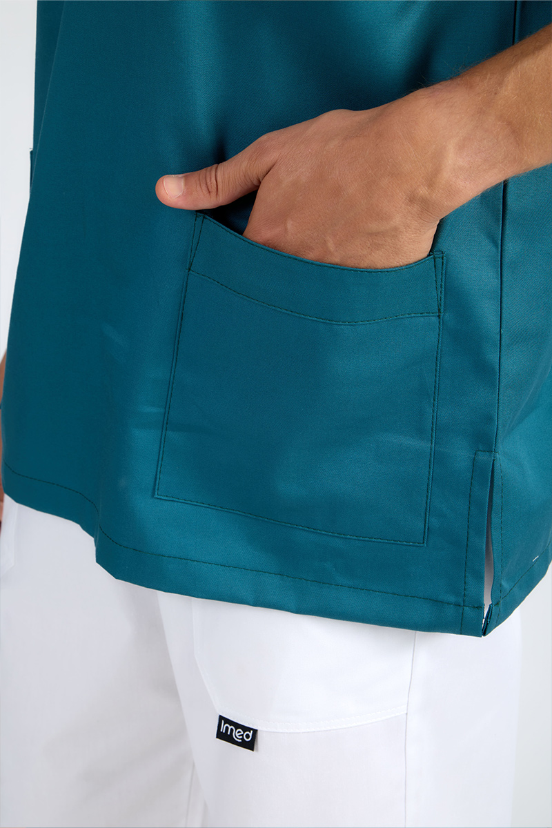 Casacca unisex con collo a V e manica a kimono, realizzata in 100% cotone, perfetta per chi cerca comfort, praticità e rispetto per l’ambiente. Il design essenziale, unito al taglio comodo e leggero, la rende ideale per l’uso quotidiano in ambito professionale. La manica a kimono aggiunge libertà di movimento e uno stile distintivo, mentre il tessuto naturale garantisce traspirabilità e freschezza. Lo scollo a V dona un tocco di sobria eleganza. Una scelta consapevole, pensata per unire stile e sostenibilità. In questa variante di colore petrolio.