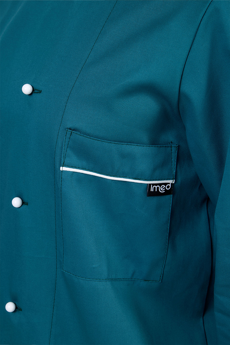 Il dettaglio dei profili a contrasto dona alla giacca un tocco di eleganza discreta, ideale per chi desidera distinguersi con stile senza rinunciare alla funzionalità. La presenza del taschino sul petto consente di avere sempre a portata di mano penne, termometri o piccoli accessori da cucina.