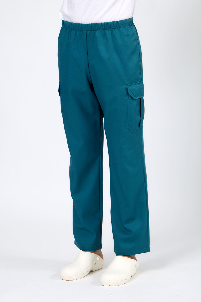 Pantaloni sanitari realizzati in 100% cotone traspirante, garantiscono comfort e freschezza per tutta la giornata. Le ampie tasche laterali a metà gamba offrono spazio utile per avere sempre l’essenziale con te. Traspiranti, comodi e regolabili con coulisse in vita, perfetti per infermieri, medici, operatori sanitari e professionisti del benessere. In questa versione nel colore petrolio